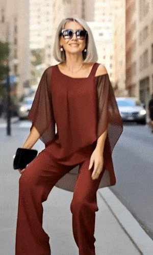 👗Elegant Layered Chiffon Top & Wide-Leg Pants Set✨