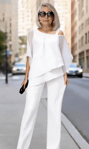 Designed to complement different body shapes, the loose-fit top and wide-leg pants create a long, balanced look while staying comfortable all day.